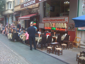 Then last night I met philsopher/historian Rainer Bromer and some of his friends (and his nephew) at a fantastic Greek restaurant (Pano Sarapevi) near Taksim. Here is a post-dinner picture (yup - no flash, so the picture is a bit grainy). Rainer is third from the front on the right - or the one with the beard.